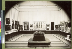 Description sommaire (auto) : Aut: anonyme. Date: 1904. Tech. gén: photographie; positif monochrome. Mots clés: Lausanne; palais de Rumine; Exposition nationale suisse des beaux-arts; peinture; Musée cantonal des Beaux-Arts; tableau; muséographie; accrochage; canapé. Image: MHL142815; haute définition (1).